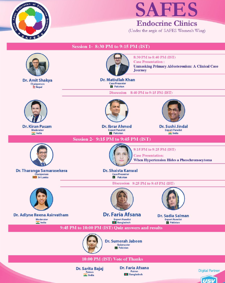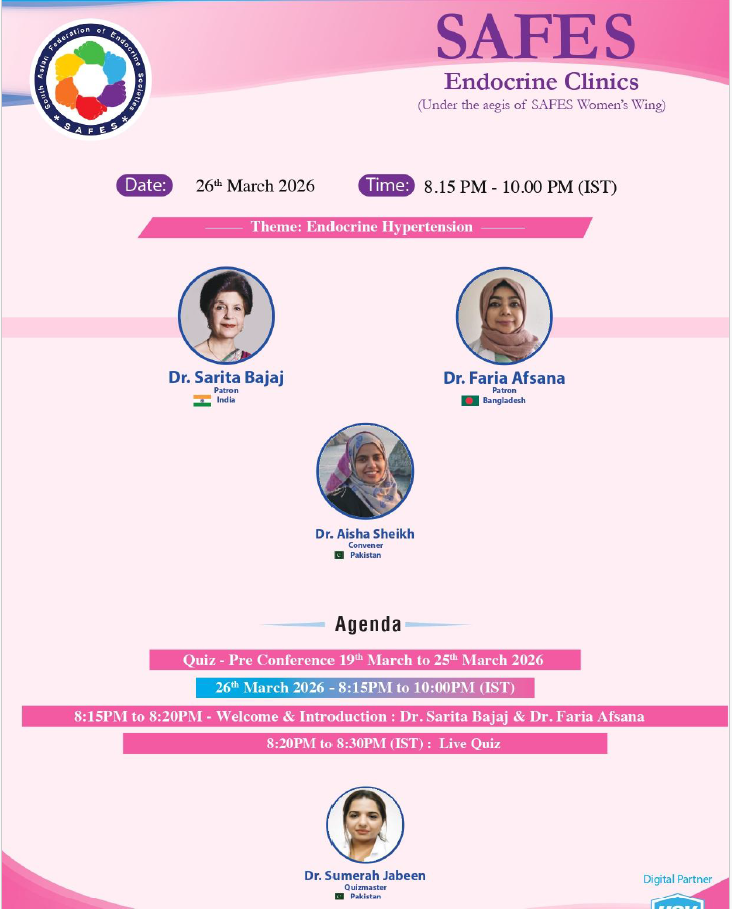 We are pleased to invite you to the upcoming SAFES Women’s Wing Scientific Webinar on “Endocrine Hypertension”, scheduled to be held on: